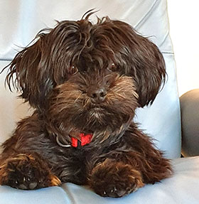 Therapiehund Frodo ist grundsätzlich in allen Sitzungen anwesend. Sein Einsatz in der Therapie erfolgt kontrolliert und nur nach Absprache.